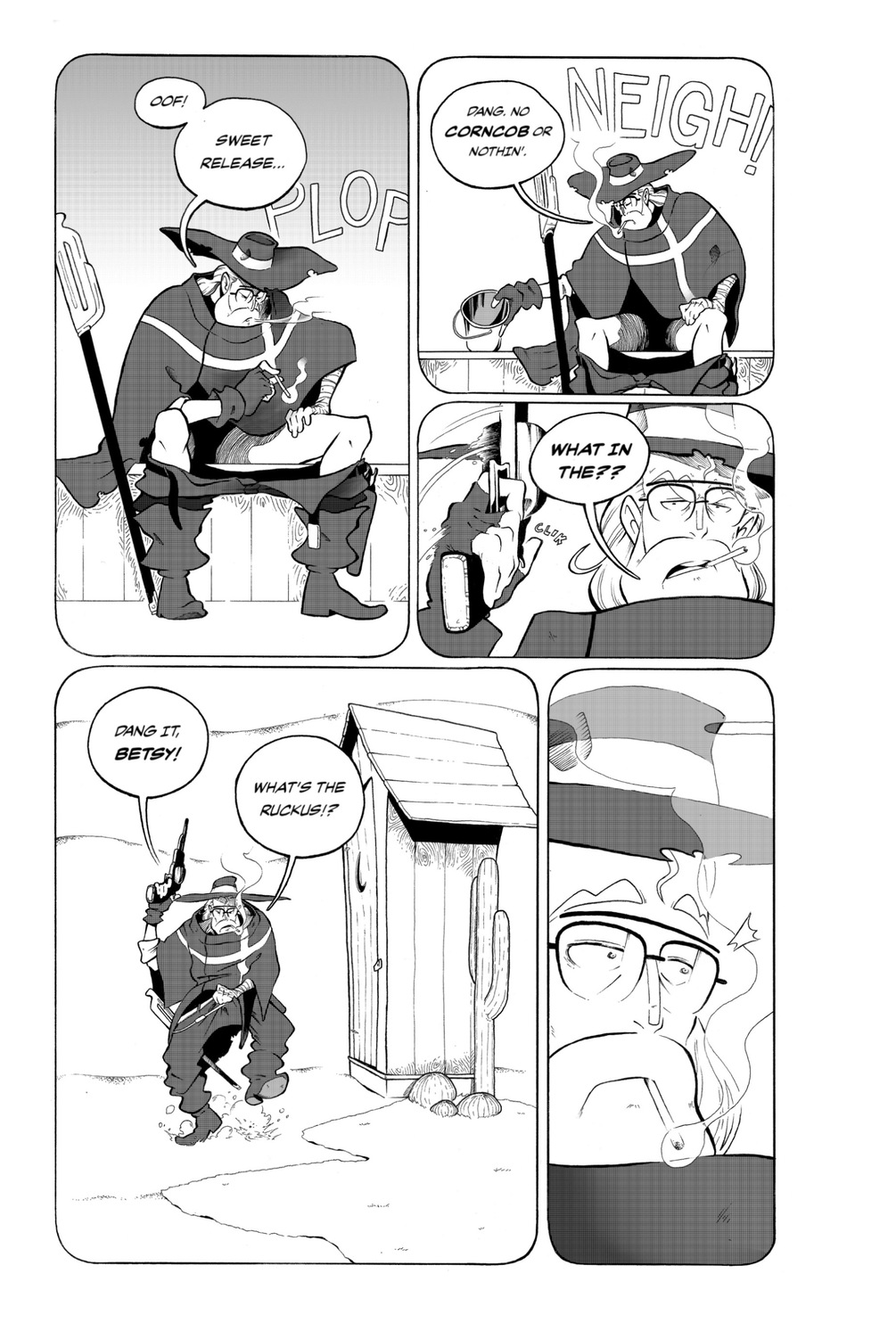The notorious Outlaw Ody and his horse Betsy wander the desert wasteland guided only by their hearts and their stomachs. Living out on the dunes is akin to being a pig in a slaughterhouse. An order of holy knights hunts them, fantastical and dangerous creatures surround them, and oh, lordy, the humidity. Will these two renegades survive the unforgiving terrain or will their souls be lost to the scorching sands?